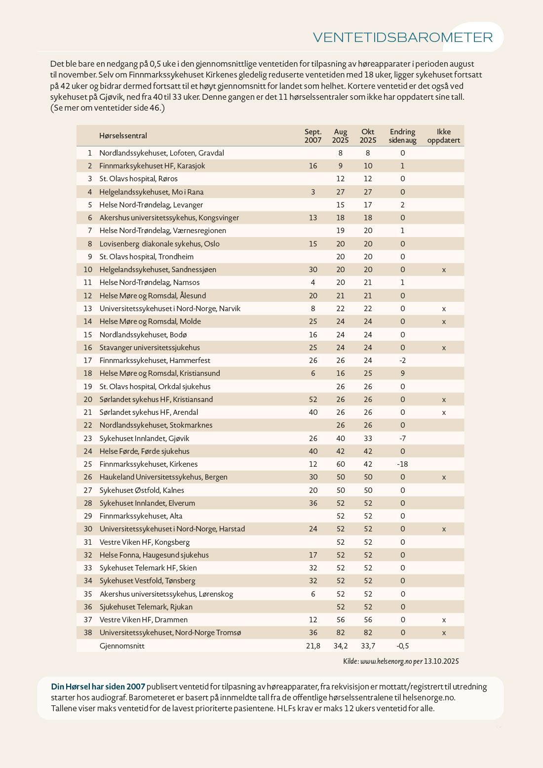 offisielle oversikten helsenorge.no publiserer, og som er utgangspunktet for Din Hørsels mangeårige ventetidsbarometer.
